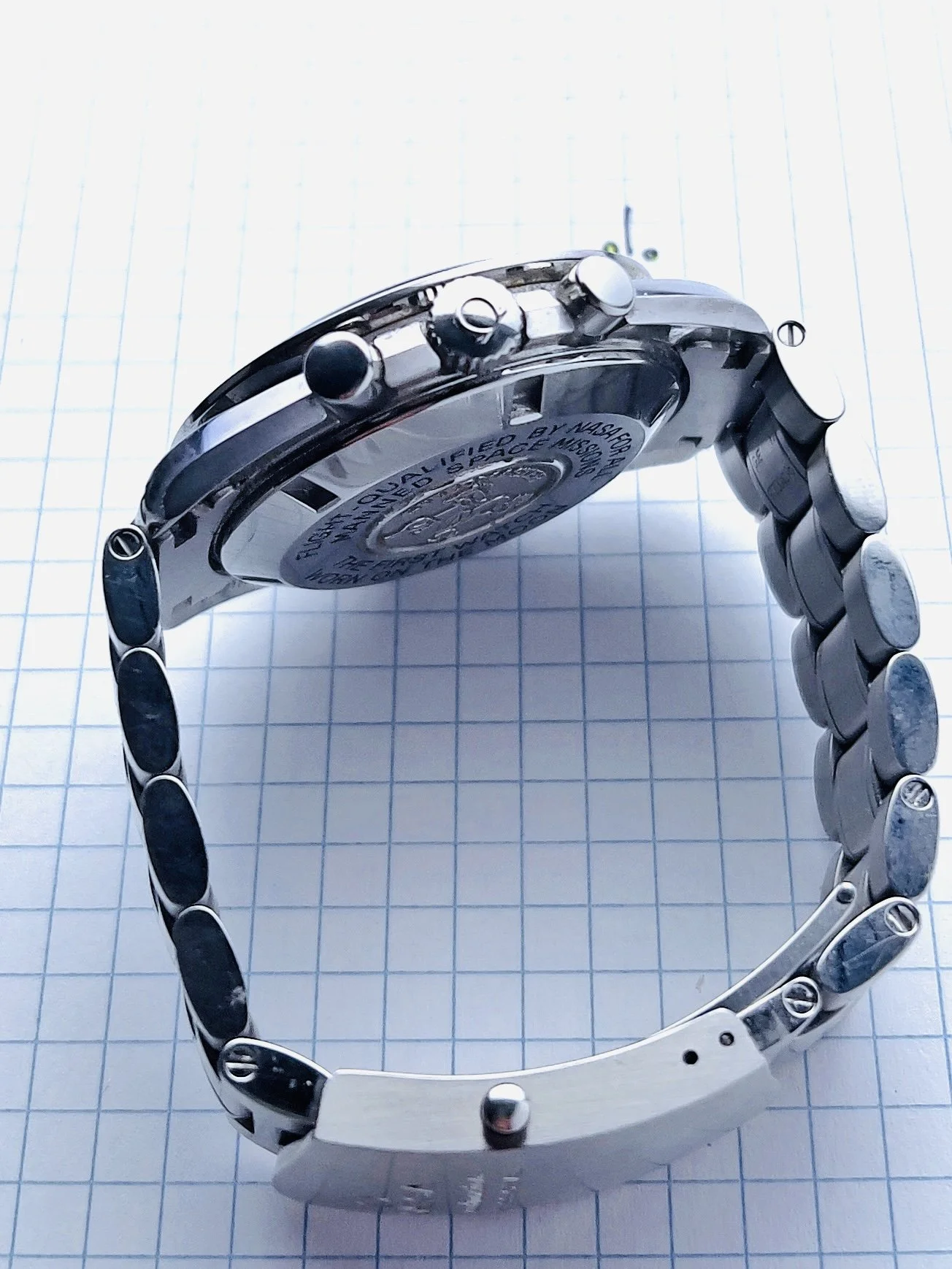 The design language of the iconic Speedmaster has never changed from launch because it is simply too good. Even better, the Lemania based caliber 1861 movement, similar and in conjunction with the 861 ran from the 70s until 2020ish—one can say they perfected the Speedmaster Professional. This one was has all the warm hesalite dome paired with a luminova dial. No service history but a clean, smooth movement and healthy watch.