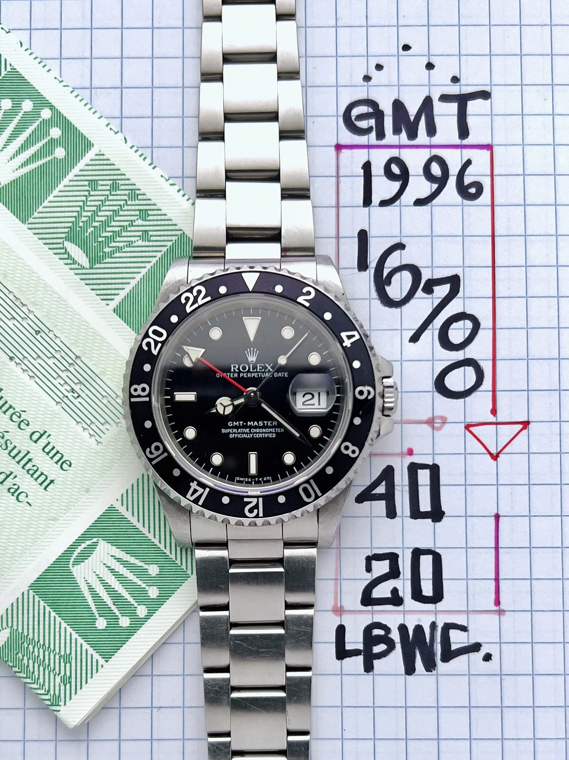 Rolex GMT Master ref. 16700 circa 1996 with Papers and 2 Bezel inserts