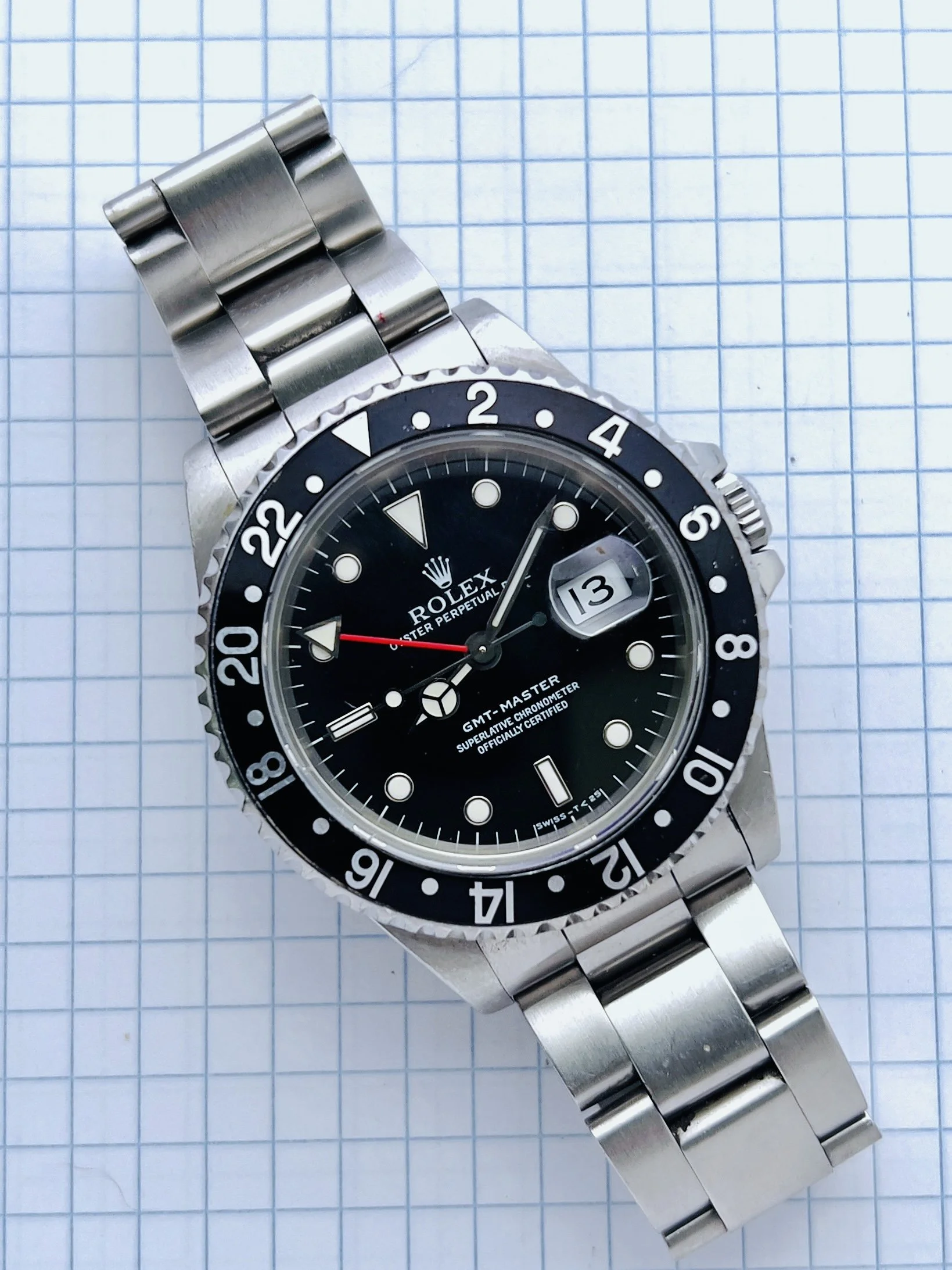 The GMT Master as opposed to the “Master II” is a thinner watch and the automatic 3175 calibre movement features an independent quickset date. So why the 16700? It is considered the “last gmt” and the end of an era born in 1988 and only lasting approximately until 1996 (the tritium era’s end). It also houses the 3175 caliber automatic movement which enables seconds hacking and independent date change. While no service history this one is running smoothly and looks healthy on timegrapher showing numbers comparable to a freshly serviced one.
